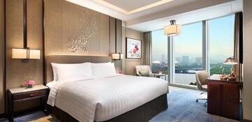 Shangri-La Yiwu is located in the city's landmark building - Yiwu World Trade Center, in the core area of the financial business district. It is a multi-functional urban complex integrating residential, commercial, office, shopping and entertainment facilities. The main building stands at a height of 215 meters, which is a homophone for "Love Yiwu". Shangri-La is across the street from the first zone of Yiwu International Trade City and is adjacent to the International Expo Center and Meihu Gymnasium.